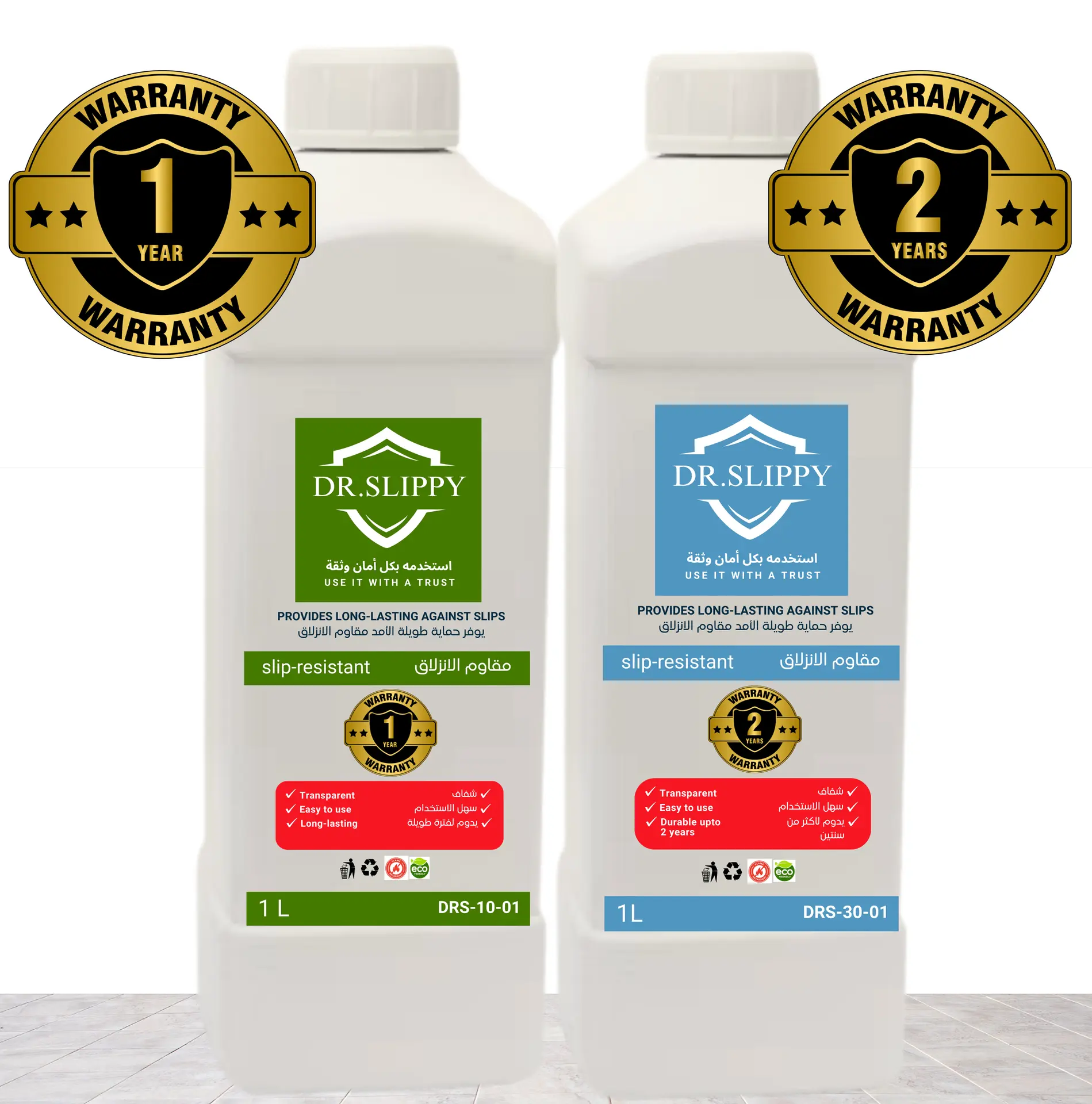 د.سليبي هو سائل مانع الإنزلاق الأول والأكثر تطورا يساعد على جعل الأسطح الزلقة أكثر أمانًا.