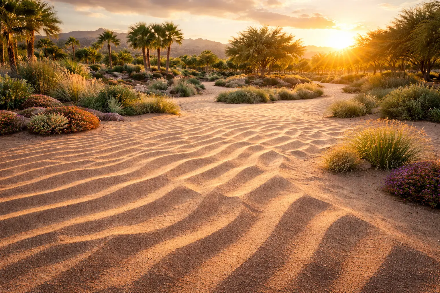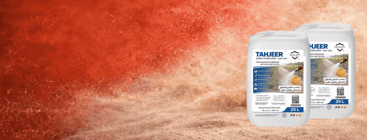 Tahjeer is used to stabilize sand in landscaping projects and to create natural desert sand wave formations, while preserving their shape and stability for the longest possible period without distortion or erosion.