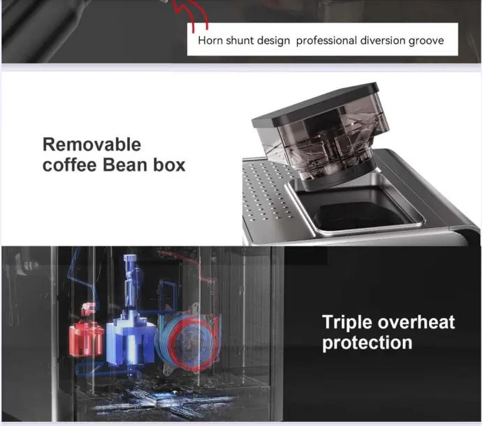 إزالة حاوية البن تتيح لك امكانية التنظيف السهل وبشكل دوري كما يوجد بها عدم سماح للهواء للدخول الى الحاوية للتسمح اكبر وقت ممكن للاحتفاظ بالنكهة القهوة الاصلية.
