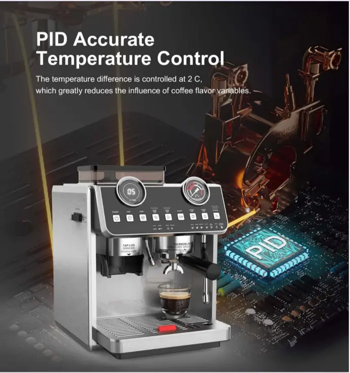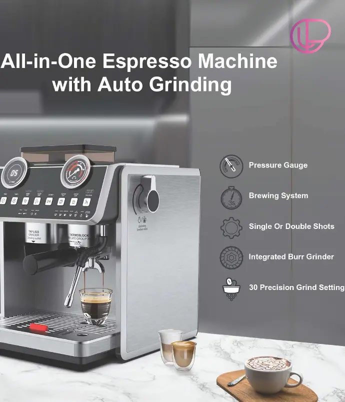 ماكينة تحضير قهوة الاسبريسو مع مطحنة قوية 30 درجة للطحن يمكن التحكم في درجة الحرارة وعصا احترافية لتزيين اللاتيه وفوهة للماء الساخن للامريكانو والشاي من بليسيمو(ضمان لمدة عام)