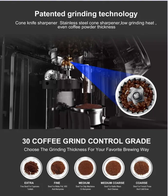 تحكم عالي ل 30 مستوى الطحن ولانواع البن (الداكن و المتوسط والفاتح)