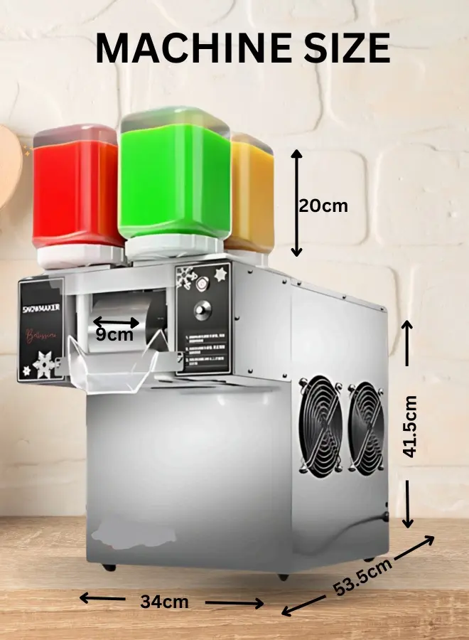 ماكينة ايس كريم الثلجي بيليسمو المواصفات: الطاقة: 750 وات الأبعاد: 53.5 × 34 × 41.5 سم الوزن: 23 كجم الإنتاجية: حتى 170 كجم يومياً يمكن وعشرات النكهات من خلال انتاج 4 عبوات من النكهات في نفس الوقت مثالية للمطاعم، محلات العصائر، ودور السينما، وكذلك للاستخدام المنزلي.